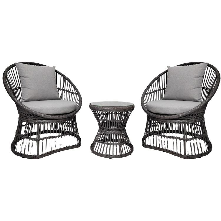 YOHO ชุดเก้าอี้ระเบียง3ชิ้นแบบหมุนได้ทุกสภาพอากาศชุดลานบิสโทรหวายชุดเฟอร์นิเจอร์กลางแจ้ง