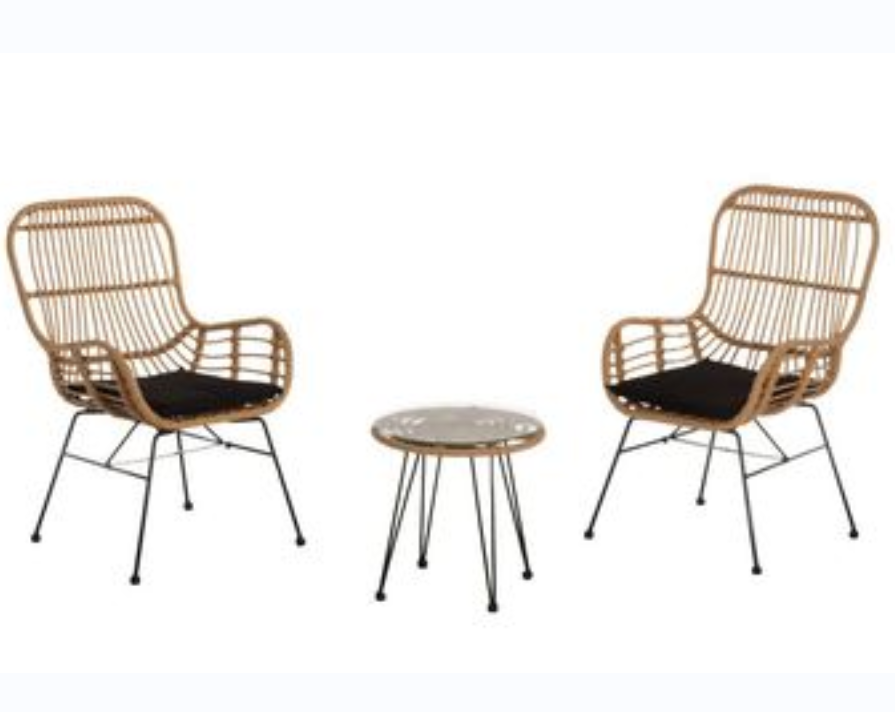 ชุดบิสโทรสำหรับลานหวายโพลีสีดำ3ชิ้นพร้อมหมอนอิง