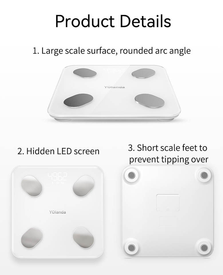 Yolanda เครื่องชั่งน้ำหนักในร่างกายอัจฉริยะ, เครื่องชั่งน้ำหนักในร่างกายสำหรับฟิตเนสที่แม่นยำ
