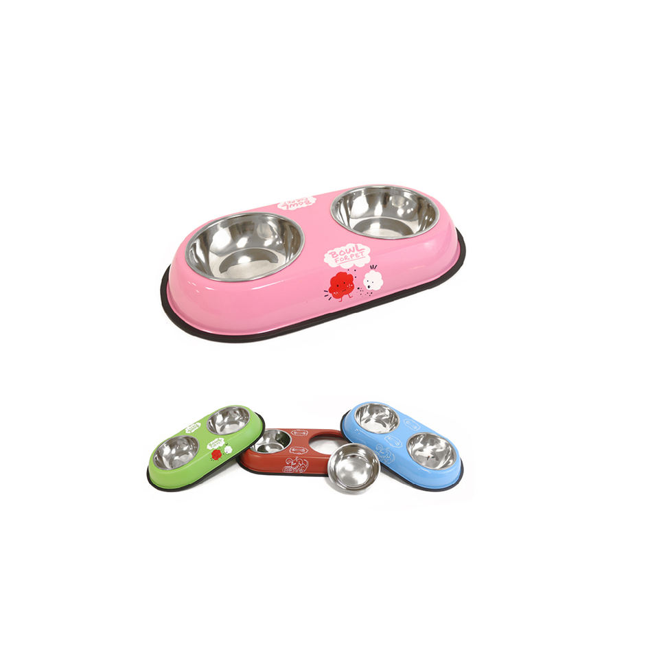 ชามอาหารสัตว์เลี้ยงยี่ห้อ Yommy แบบสองช่อง ขนาด 38.5 ซม. ทำจากสแตนเลส รูปทรงวงรี สำหรับสุนัขและแมว