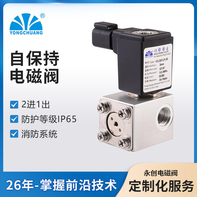 วาล์วโซลินอยด์แบบยึดติดเอง รุ่น Yongchuang YCLD21 2 ทางเข้า 1 ทางออก สำหรับระบบดับเพลิง ควบคุมการจัดเก็บพลังงาน บรรจุภัณฑ์โรงงาน กำลังไฟสูง
