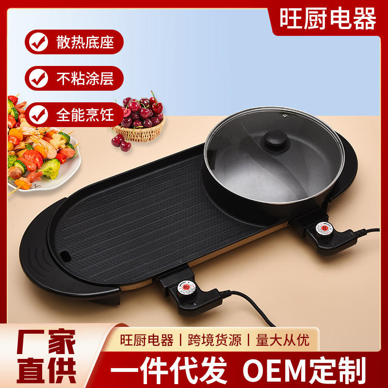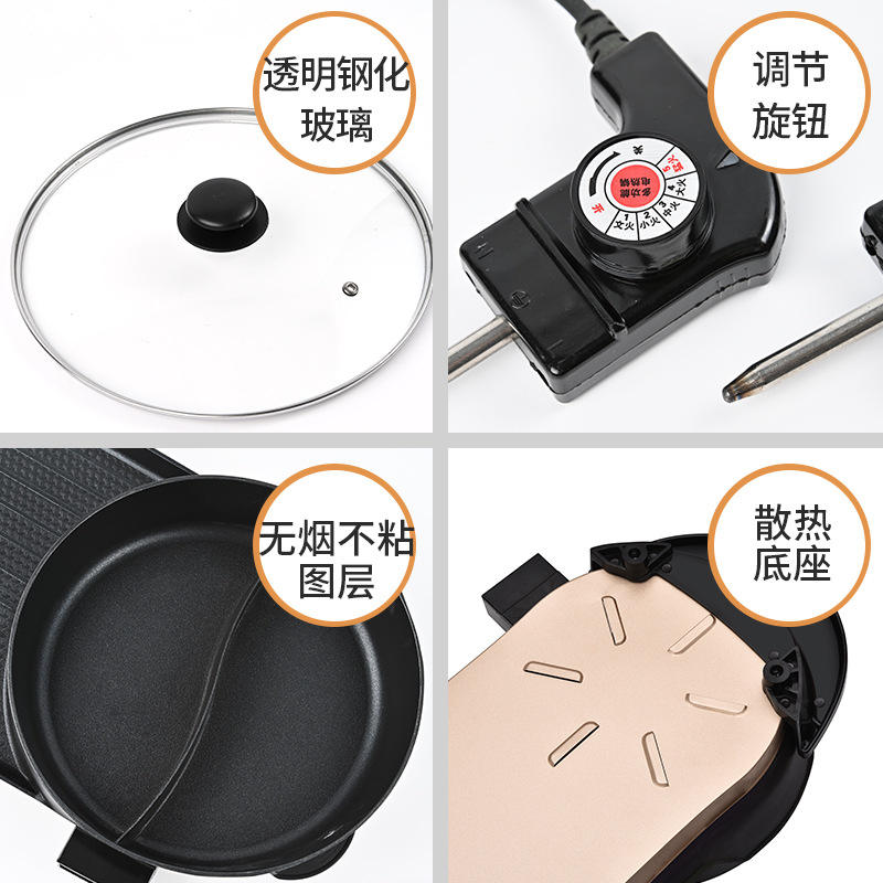 Yongkang Electric Grill Pan 27cm X 70cm Dual Compartment Non-Stick PTFE High Power Household Cooker With Lid