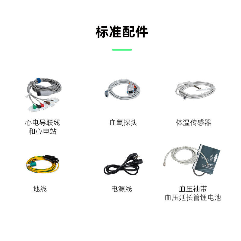 เครื่องวัดสัญญาณชีพผู้ป่วยแบบพกพาขนาด 14 นิ้ว ยี่ห้อ Yongkang Medical พร้อมวัดค่า ECG, SpO2, NIBP, อุณหภูมิ มีแบตเตอรี่ในตัว ได้รับการรับรองมาตรฐาน CE สำหรับใช้ในโรงพยาบาล