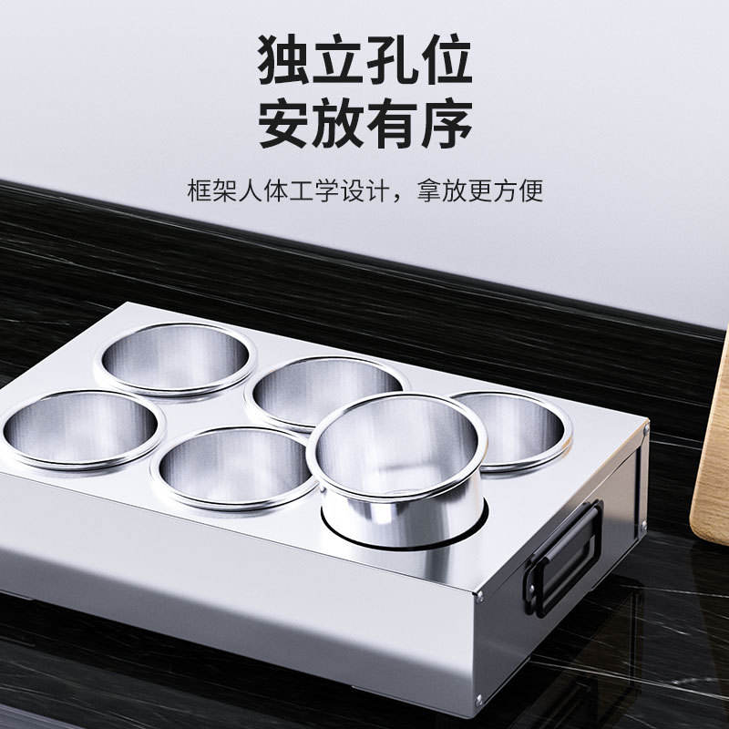 ชั้นวางขวดเครื่องเทศสแตนเลสหยงคังพร้อมช่องใส่ 6 ช่อง ฝาโลหะมีหูจับ ป้องกันแบคทีเรีย กันความชื้น ไม่ต้องเจาะ