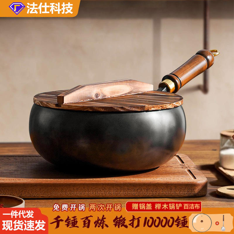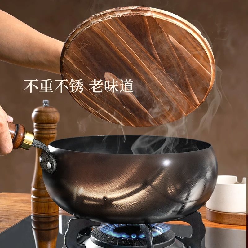 กระทะเหล็กแบบดั้งเดิมยงคัง หม้อทอดเคลือบกันติด สำหรับทำอาหารในครัวเรือน ดีไซน์พกพา ล้างด้วยมือเท่านั้น