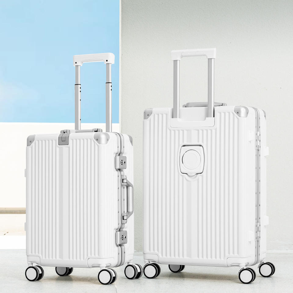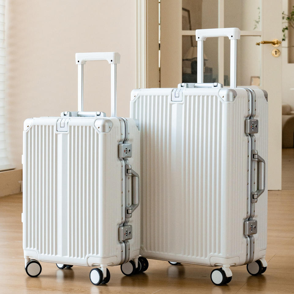 กระเป๋าเดินทางอลูมิเนียมยี่ห้อหยงเชิง ขนาด 20 นิ้วแบบถือขึ้นเครื่อง และขนาด 28 นิ้ว พร้อมกุญแจล็อค ลายเส้นสีขาว สำหรับนักธุรกิจ