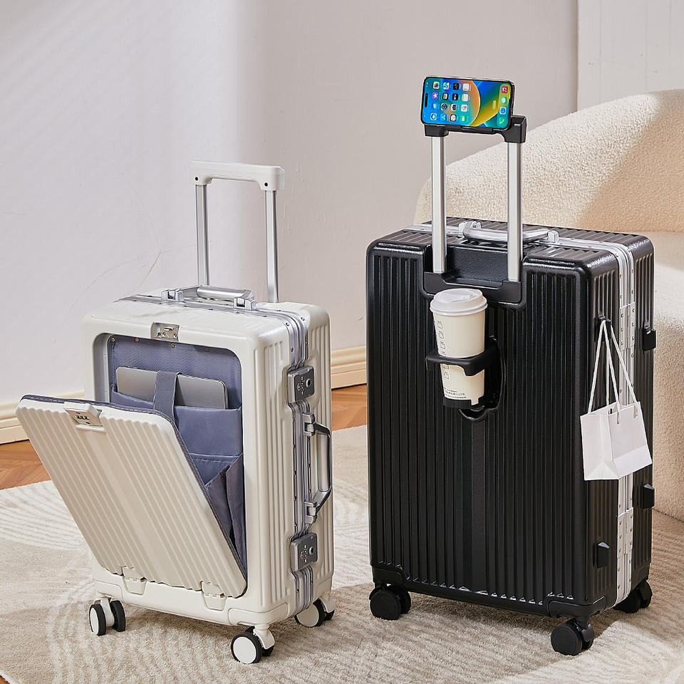 กระเป๋าเดินทางล้อลากสำหรับผู้หญิง ยี่ห้อ Yongsheng โครงอะลูมิเนียม ขนาด 20 นิ้ว พร้อมกุญแจล็อค ล้อหมุนได้ 360 องศา สีพื้น วัสดุ PC