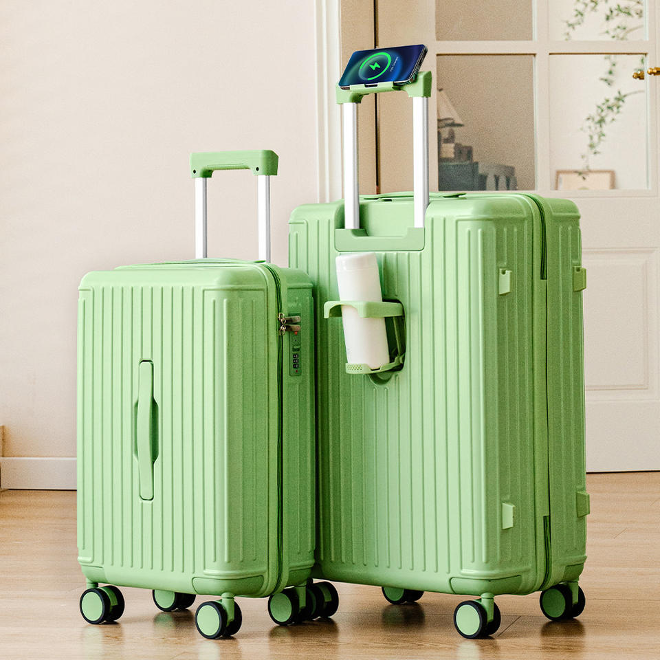 กระเป๋าเดินทางยงเชิง ขนาด 20 และ 28 นิ้ว พร้อมที่วางแก้ว ล้อลากหมุนได้รอบทิศทาง ระบบล็อครหัสแบบผสม ลายทาง