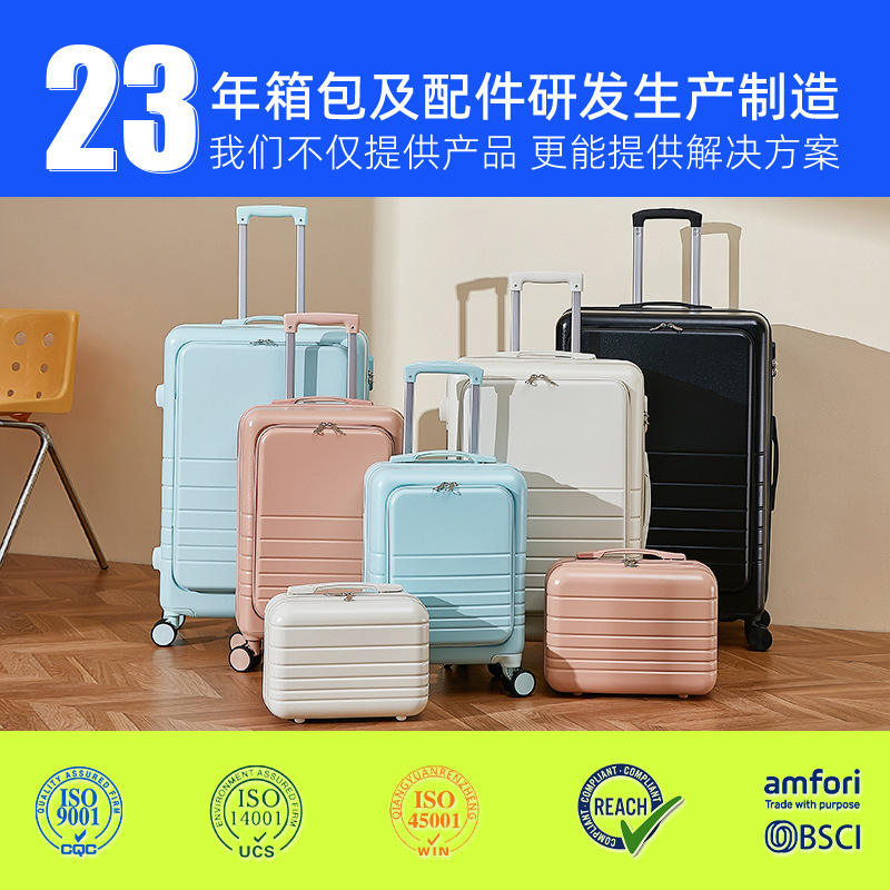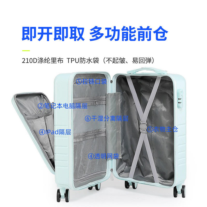 กระเป๋าเดินทางแบบล้อลากเปิดด้านหน้าสำหรับผู้หญิงยี่ห้อ Yongsheng ขนาด 20 นิ้ว พร้อมล้อหมุน น้ำหนักเบา สีพื้น สไตล์มาการอง