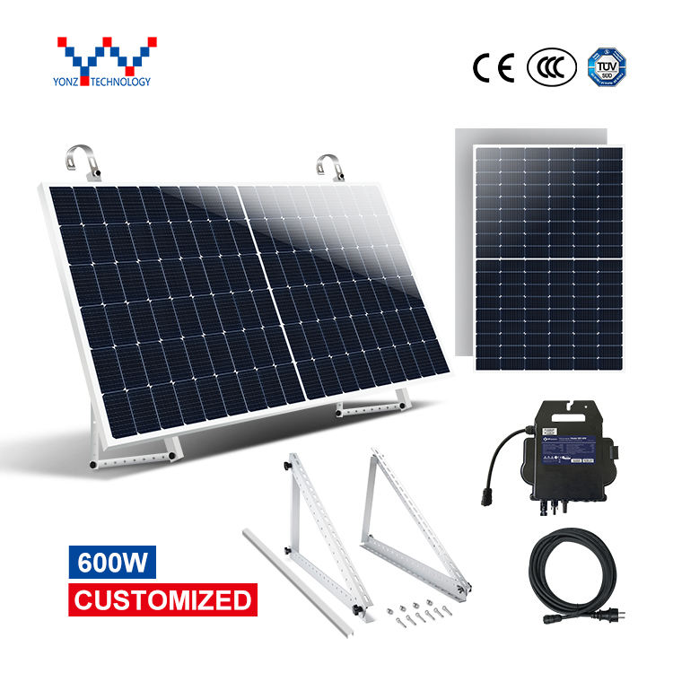 Yonz ชุดพลังงานแสงอาทิตย์เสียบเล่นสวนระเบียง 600W ติดตั้งง่ายระบบพลังงานแสงอาทิตย์พร้อมอินเวอร์เตอร์ไมโครนอกตาราง
