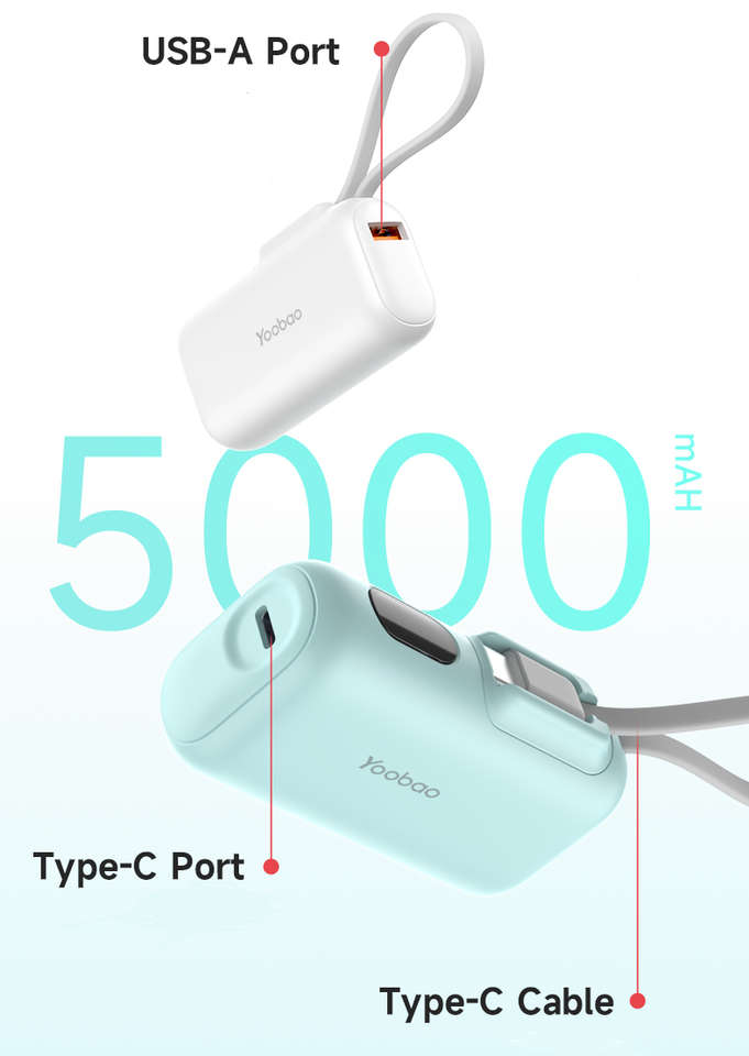 Yoobao พาวเวอร์แบงค์ขนาดเล็ก5000มิลลิแอมป์ต่อชั่วโมงสายเคเบิลในตัวเป็นสายคล้องพร้อมแท่นชาร์จอุปกรณ์เสริมที่มีหน้าจอ LED