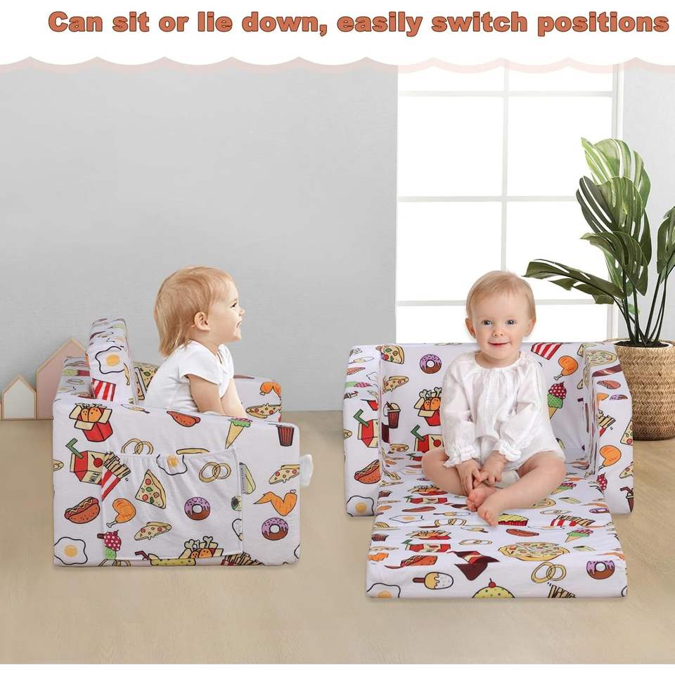 โซฟาเด็กแบบปรับเปลี่ยนได้ 2-in-1 ยี่ห้อ Yoonnie ผ้ากำมะหยี่สีขาว พร้อมช่องเก็บของด้านข้าง พับได้ เป็นมิตรกับสิ่งแวดล้อม เหมาะสำหรับเด็กเล็ก