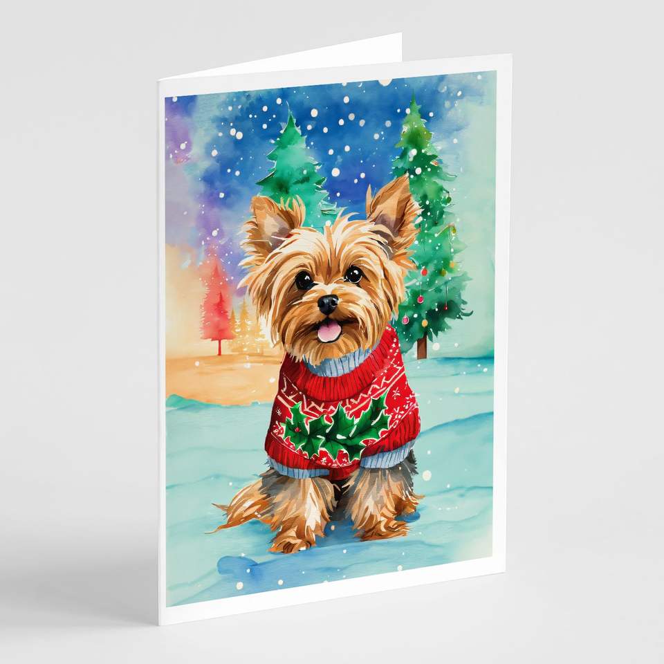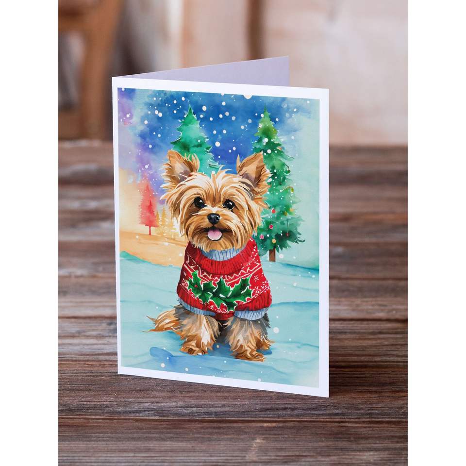 Yorkshire Terrier yorkie บัตรอวยพร A7แปลกๆคริสต์มาสแพ็คการ์ดเปล่า8ใบพร้อมซองจดหมายขนาด5x7