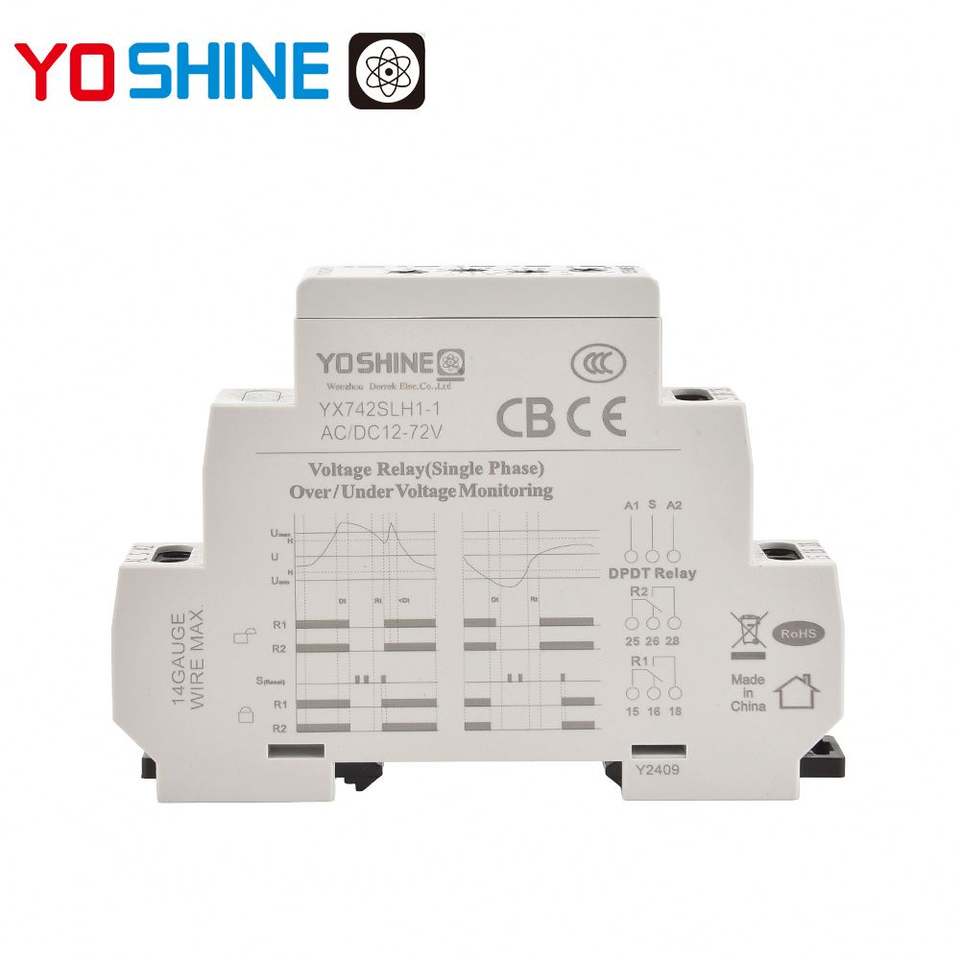 Yoshine100V-165V แรงดันไฟฟ้าเกินเฟสเดียวและรีเลย์ป้องกันแรงดันไฟฟ้าต่ำกว่าพร้อมล็อค