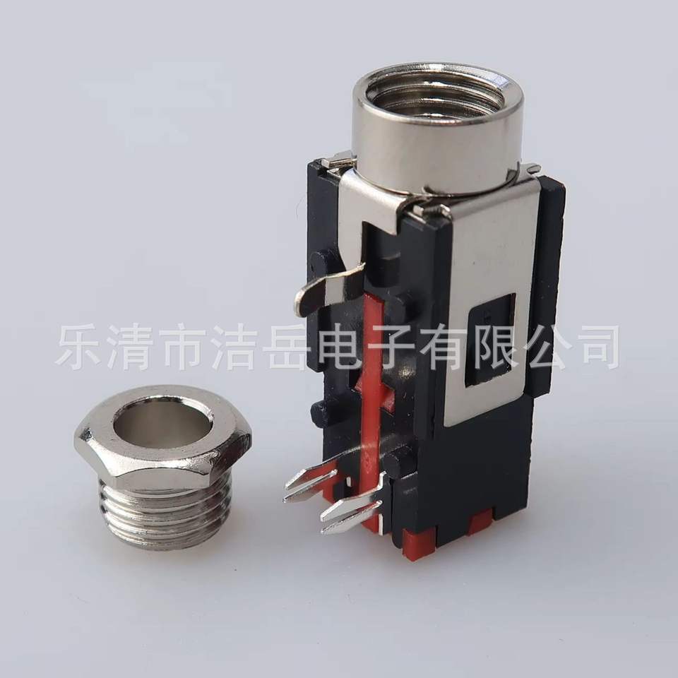 ขั้วต่อแจ็คโทรศัพท์ขนาด 6.35 มม. แบบ 3 ขา สำหรับติดตั้งบนแผง พร้อมฉนวนสีแดง ปลอกทองแดง สำหรับเสียงและวิดีโอ