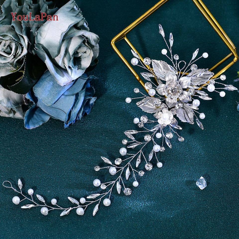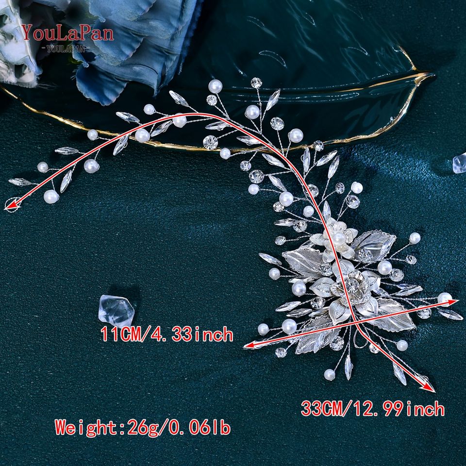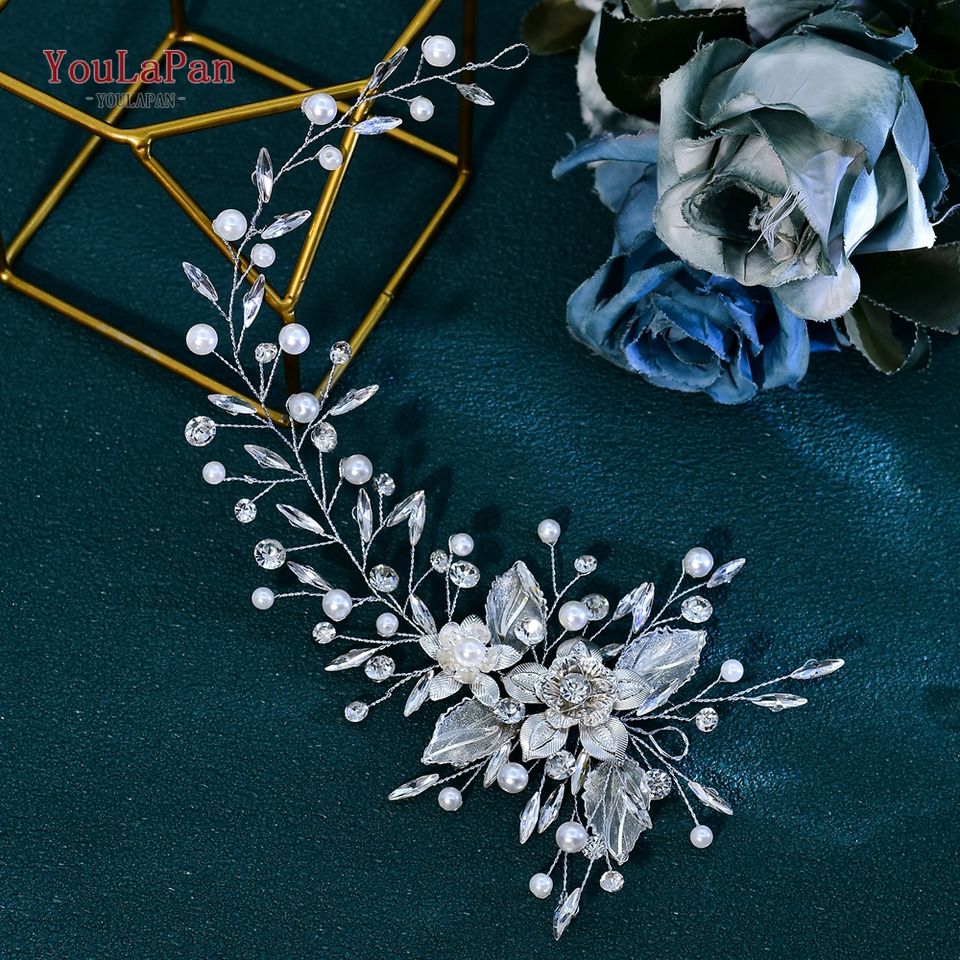 ที่คาดผมไข่มุกหรูหรา YouLaPan สำหรับเจ้าสาวงานแต่งงาน เครื่องประดับผมโลหะผสมรูปดอกไม้ประดับเพชรเทียม เครื่องประดับผมสำหรับงานเลี้ยง HP937