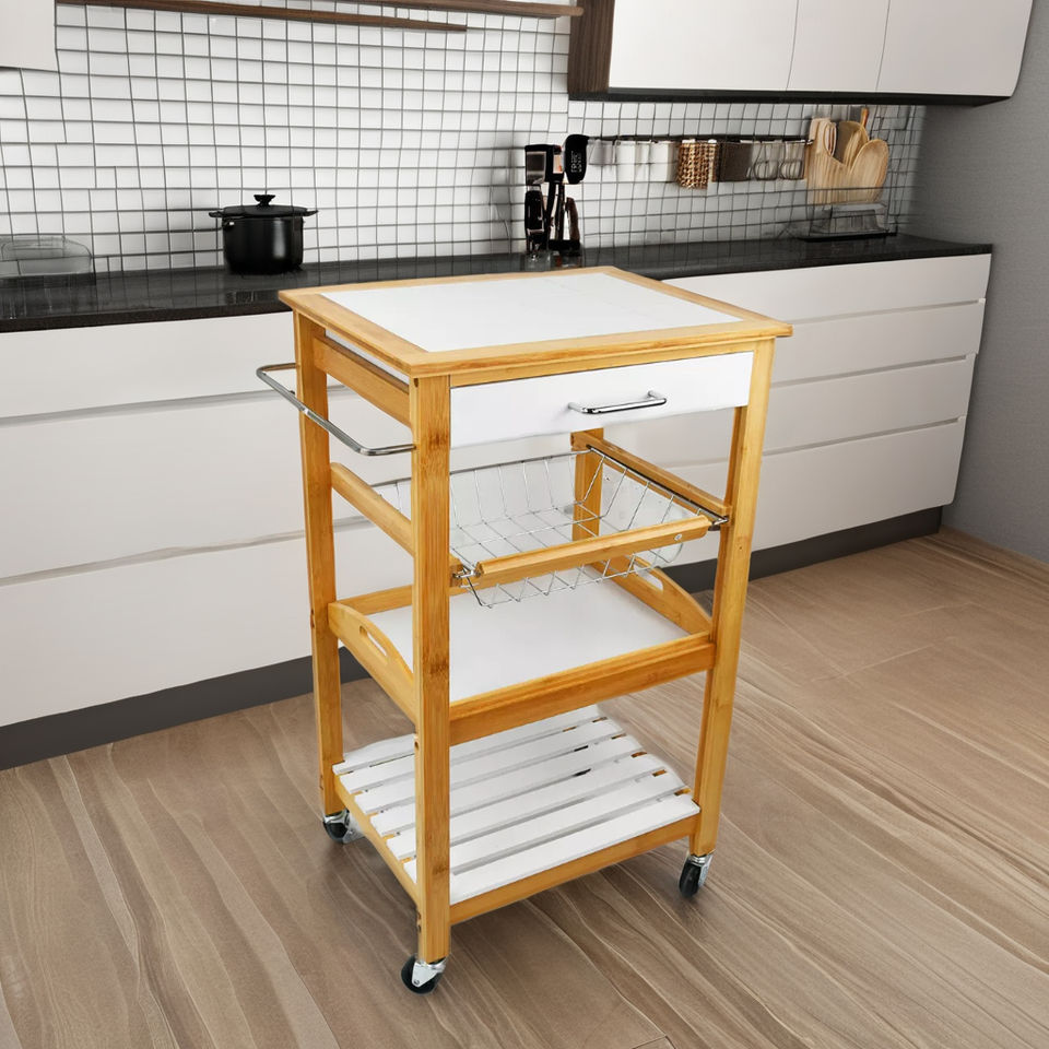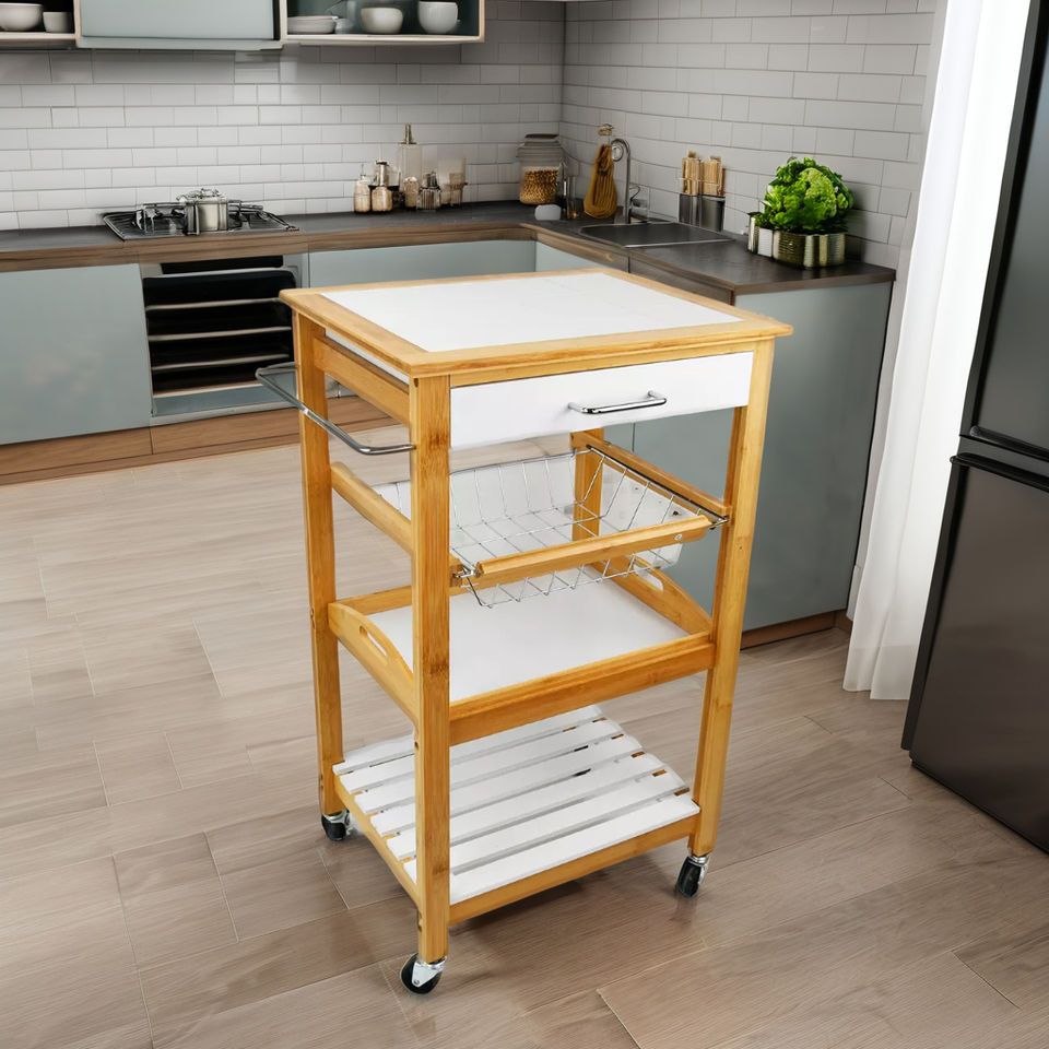 รถเข็นห้องครัวทำจากไม้ไผ่ธรรมชาติพร้อมลิ้นชัก