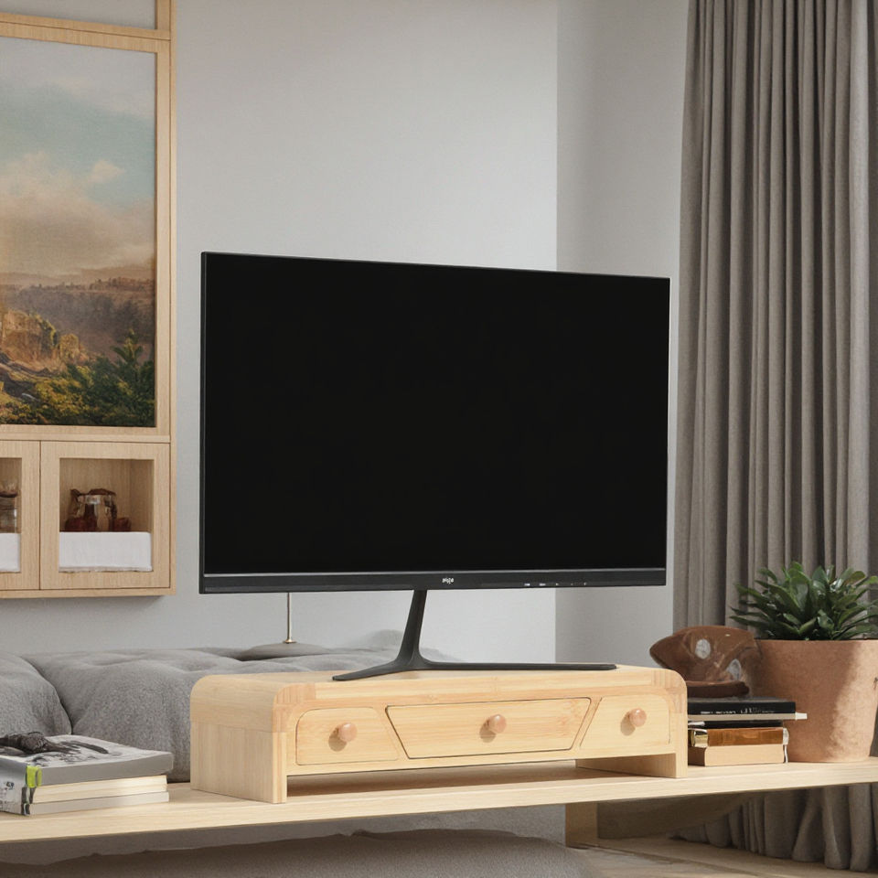 Youlike ขาตั้งจอไม้ไผ่ชั้นวางจัดระเบียบพร้อมที่จัดเก็บสำหรับห้องนั่งเล่นสำนักงานพื้นที่