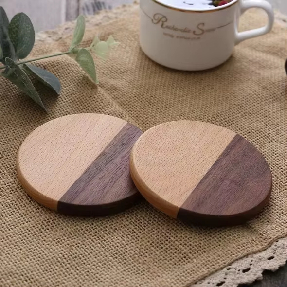 ชื่อผลิตภัณฑ์:ที่รองแก้วเครื่องดื่มไม้เนื้อแข็งรอบ2แพ็ค
