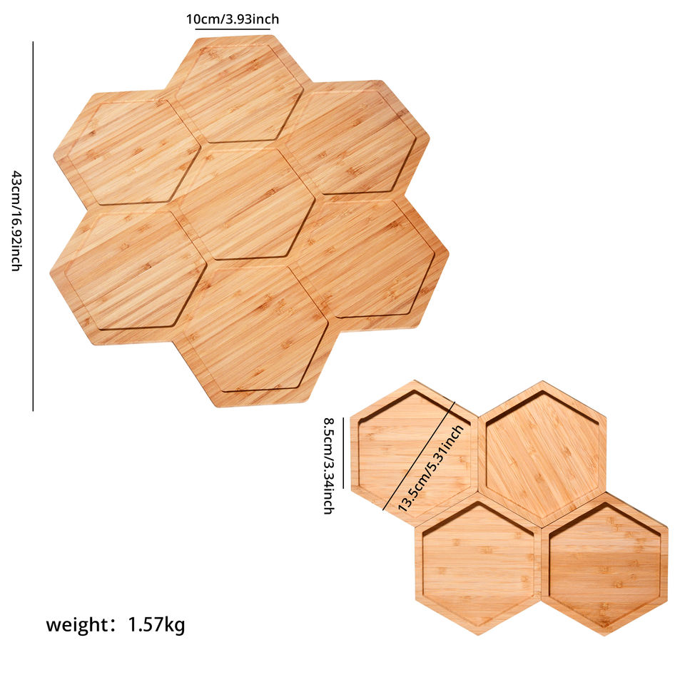 ถาดไม้ไผ่ทรงหกเหลี่ยมสำหรับใส่ขนมขบเคี้ยวแบบแบ่งจานสำหรับงานเลี้ยงดีไซน์ใหม่