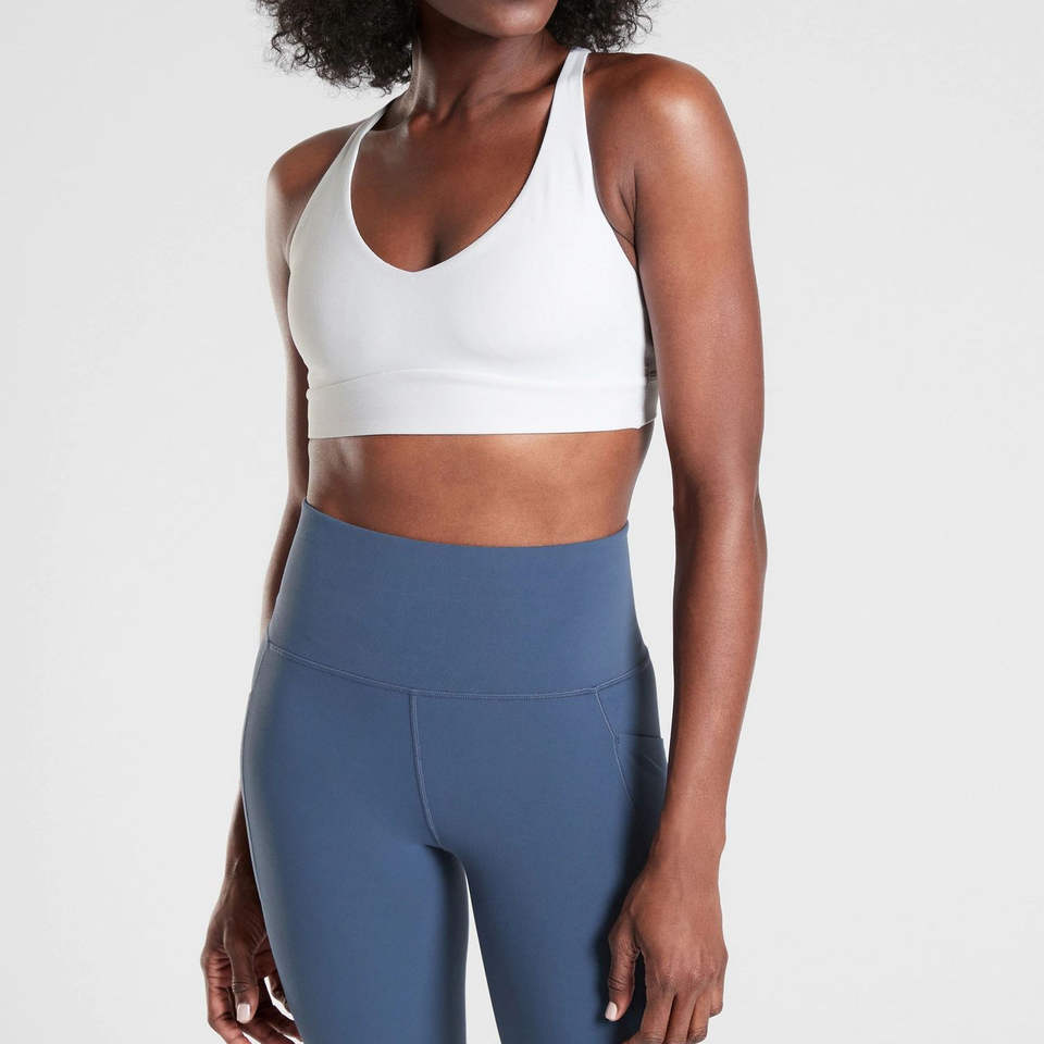 สปอร์ตบราใส่วิ่งสวมใส่สบายสำหรับเด็กสาวสไตล์การกดไร้รอยต่อรองรับสูงพร้อมหัวเข็มขัดแบบไขว้ด้านหลังรวมขนาดพิเศษ