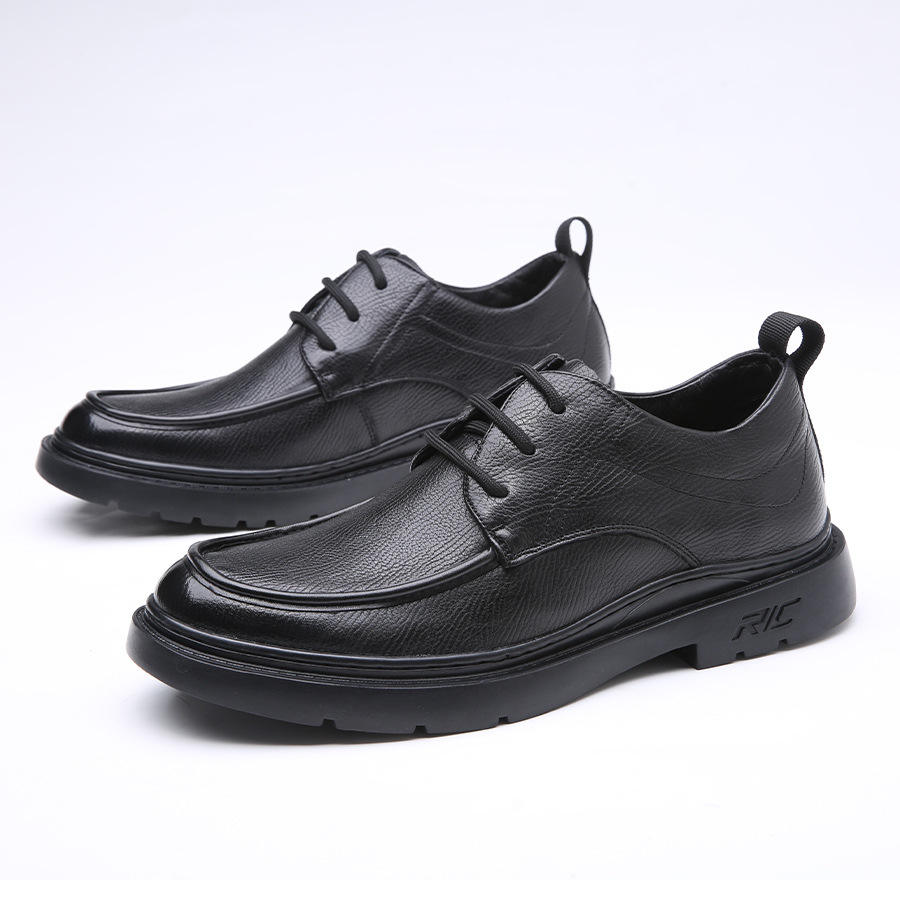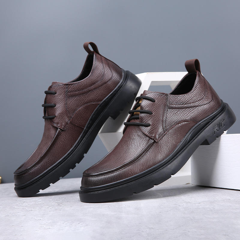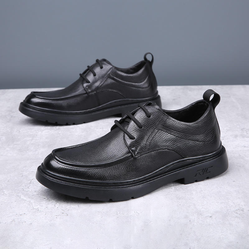Young Men's Genuine Leather Solid Office Career Dress Shoes Soft Comfortable Flat Lace-Up Closure Breathable Rubber Autumn