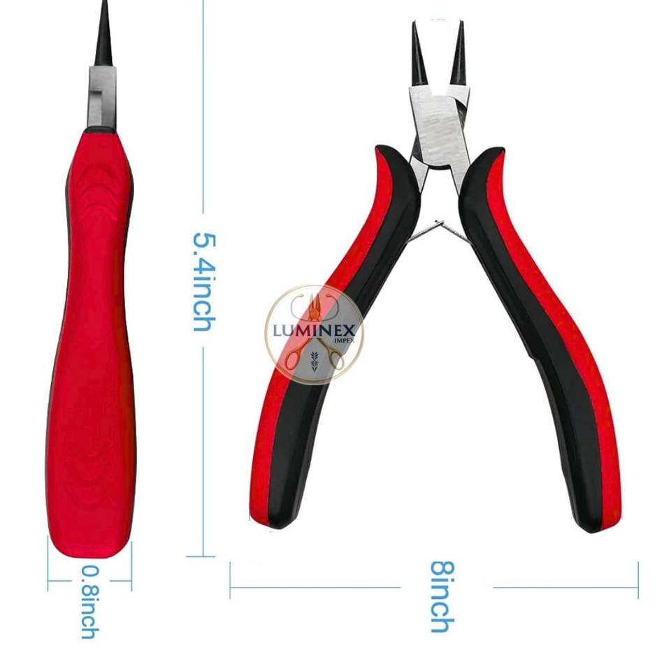 คีมปากนกแก้วสแตนเลสสำหรับทำโลโก้ของคุณเครื่องมือทำเครื่องประดับสีแดง/ดำอุปกรณ์สำหรับทำห่วงและโค้ง