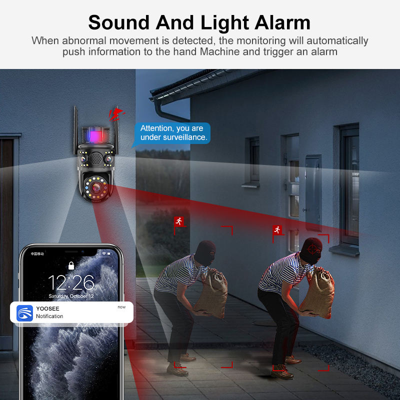 Yousee กล้องรักษาความปลอดภัยกลางแจ้ง6MP HD, กล้องรักษาความปลอดภัยกลางแจ้ง IP66 3หน้าจอจอภาพ P2P เครือข่าย4G ไร้สายซีมอสสมาร์ทโฮม