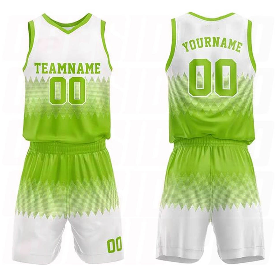 ชุดเสื้อและกางเกงบาสเก็ตบอลแบบกลับด้านได้ สีเขียวและสีขาว สำหรับเยาวชนและผู้ใหญ่ พร้อมโลโก้ส่วนตัว ชุดยูนิฟอร์มสำหรับผู้ชายและผู้หญิง