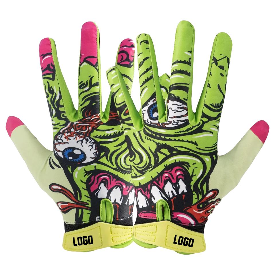 ถุงมือรับสัญญาณฟุตบอลสำหรับเยาวชนถุงมือผ้าระบายอากาศได้ดีถุงมืออเมริกันฟุตบอลแฟชั่นดีไซน์ตามสั่ง