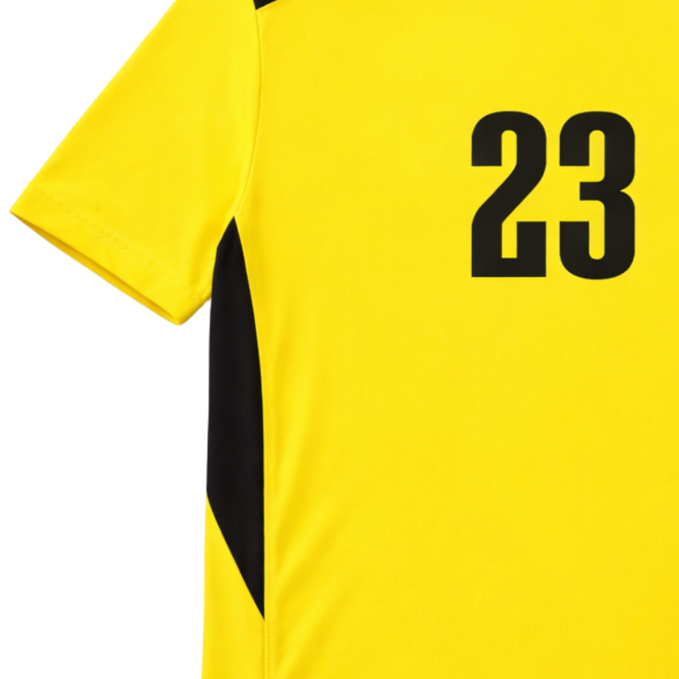 เสื้อฟุตบอลเยาวชนฮอก วิวอเรชั่น คัสตอมคุณภาพสูงพร้อมหมายเลข 23 สีน้ำเงินและสีเหลือง
