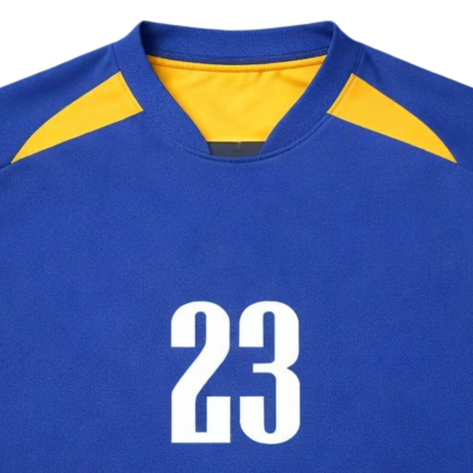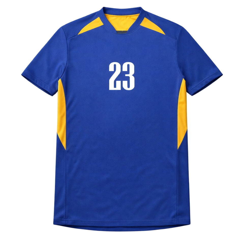 เสื้อฟุตบอลเยาวชนฮอก วิวอเรชั่น คัสตอมคุณภาพสูงพร้อมหมายเลข 23 สีน้ำเงินและสีเหลือง