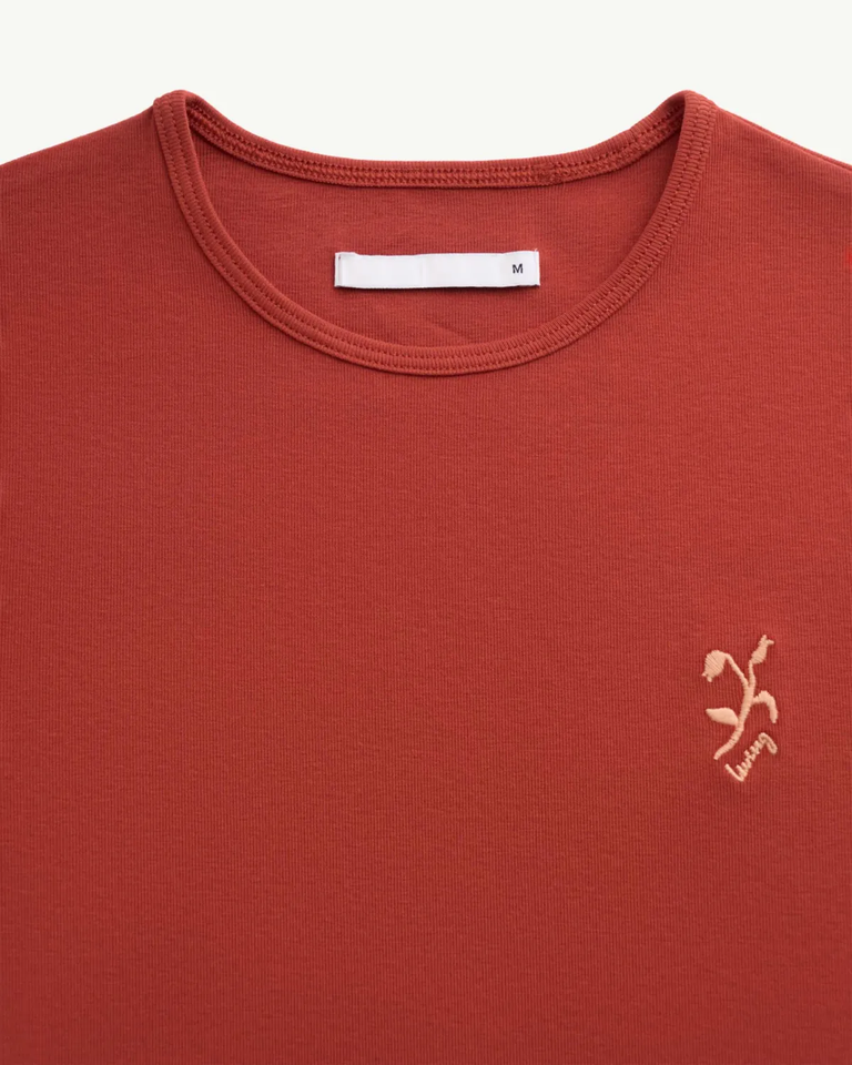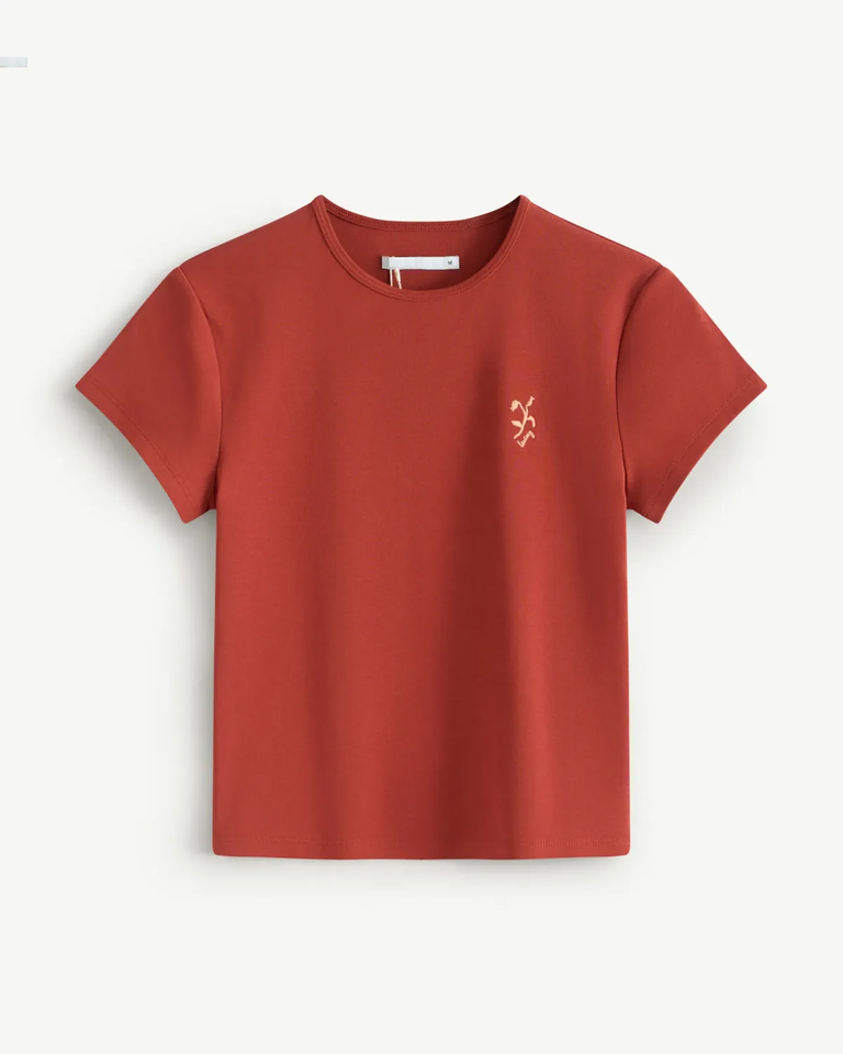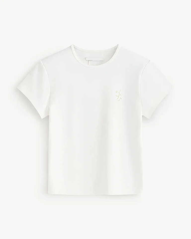 เสื้อเชิ๊ตผ้าฝ้าย100% สำหรับผู้หญิง, เสื้อยืดแขนสั้นปักลายดอกไม้หน้าอกซ้าย