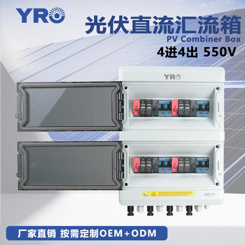 กล่องรวมสายไฟฟ้าโซลาร์เซลล์ Yro แบบ 4 เข้า 4 ออก 550V DC พร้อมเบรกเกอร์กันน้ำ ติดผนัง