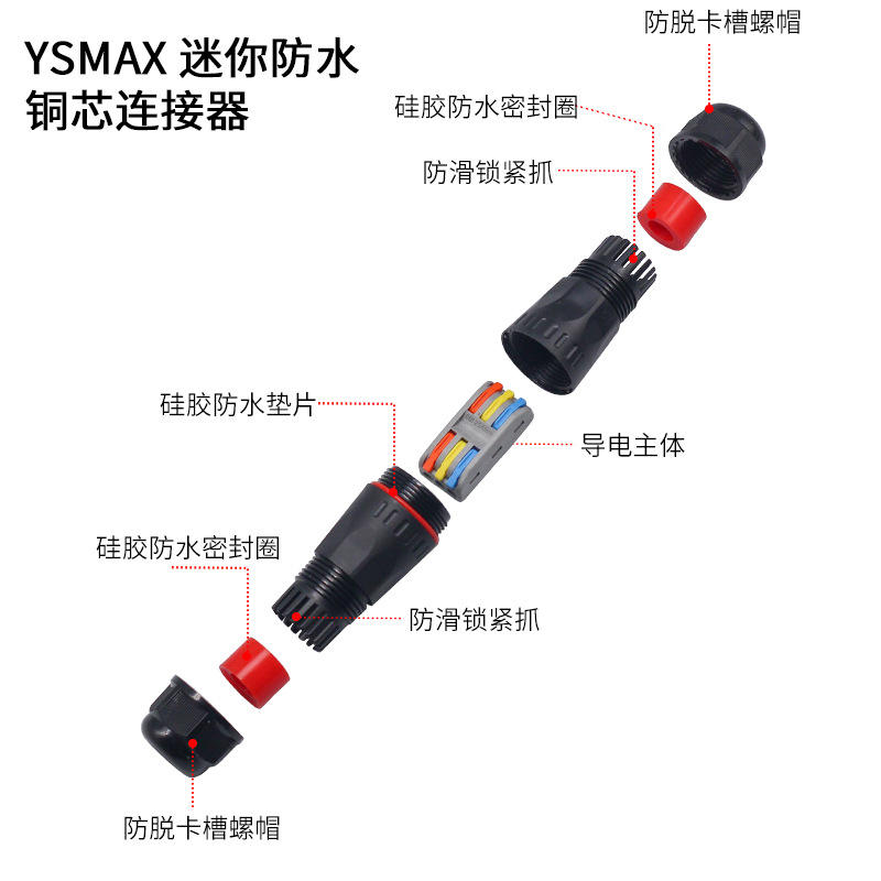 ขั้วต่อสายไฟ Ys Splice Connectors 3P 0.08-4 มม. แบบเสียบปลั๊ก กันน้ำ สำหรับใช้งานกลางแจ้ง วัสดุ PC สำหรับสายไฟแบบยุโรป