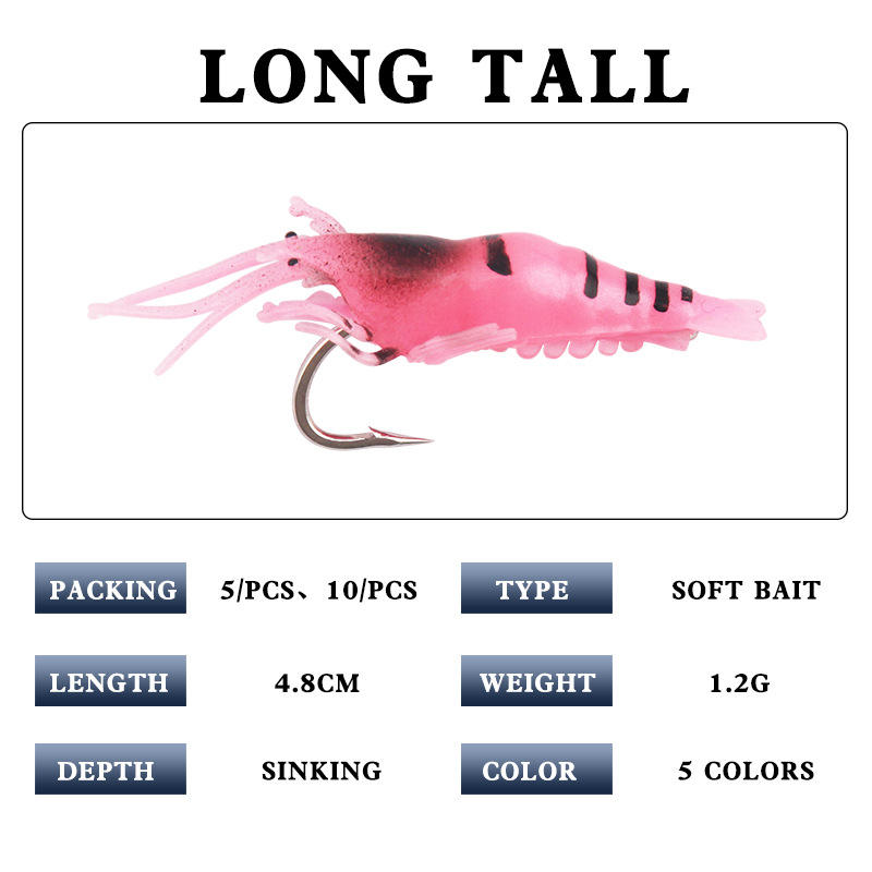 เหยื่อกุ้งยี่ห้อ Ytohxy แบบนิ่ม 5 ชิ้น 10 ชิ้น เรืองแสงในที่มืด เหยื่อตกปลาน้ำจืด เหยื่อตกปลาแบบติดก้น สำหรับปลา