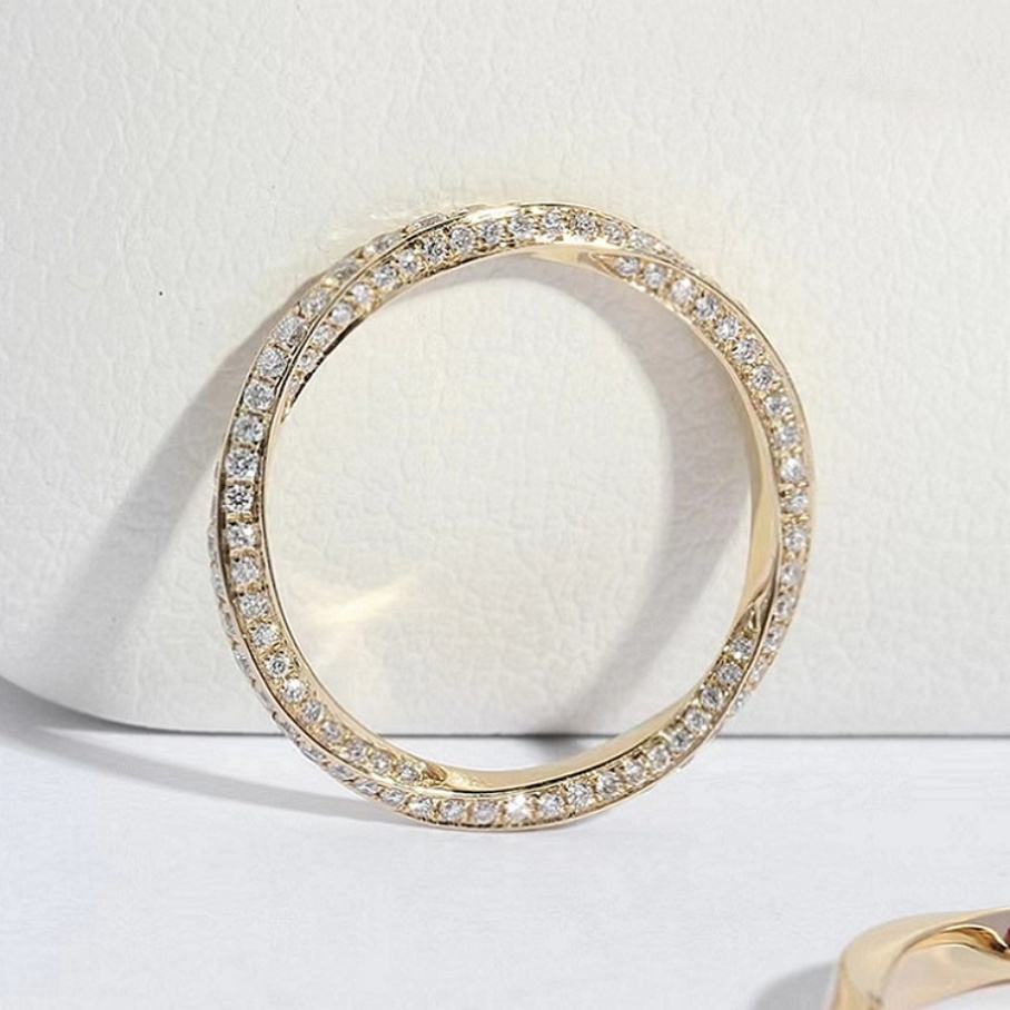 แหวนคู่หยูอิง ทองแท้ 14K ประดับเพชรโมอิสซาไนต์ทรงกลมเจียระไนแบบบริลเลียนท์ แหวนโมเบียสสำหรับเครื่องประดับงานแต่งงาน