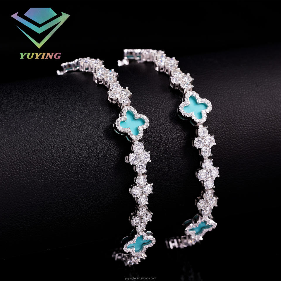 สร้อยข้อมือคิวบาแบบไขว้ ยี่ห้อ Yu Ying ทำจากเงินแท้ชุบทอง สำหรับผู้ชาย สไตล์ฮิปฮอป ประดับด้วยเพชร VVS Moissanite แบบเทนนิส