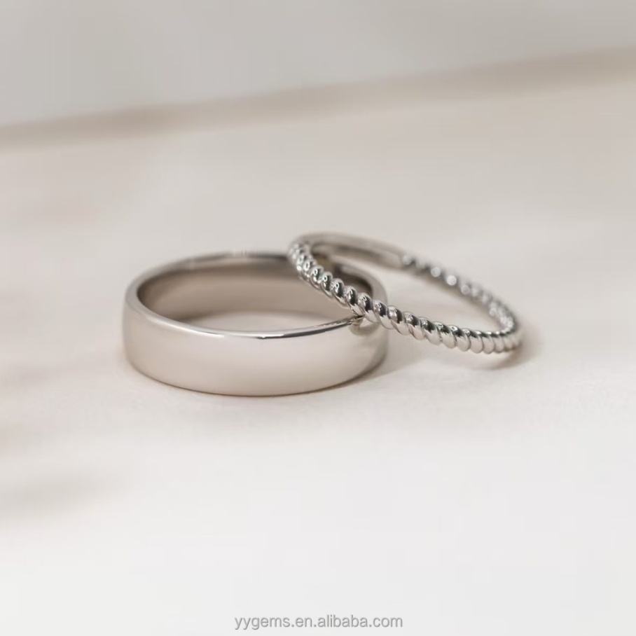 แหวนคู่แบบเรียบหรู Yu Ying ประดับเพชรโมอิสซาไนต์ทรงเหลี่ยม ตัวเรือนทองคำแท้ 14K สีเหลืองทอง ชุดแหวนเครื่องประดับคุณภาพสูง