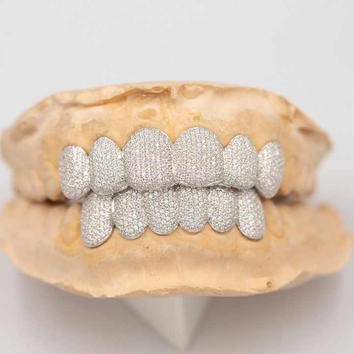ยูอิง ฟันปลอมแบบสั่งทำพิเศษ ชุบเงินแท้ S925 ชุบทองคำขาว 14k/18k ประดับเพชรโมอิสซาไนต์ VVS ระดับ Iced Out สำหรับติดฟัน