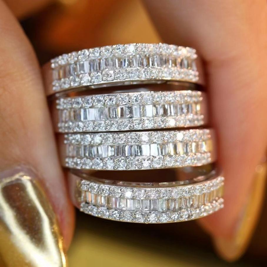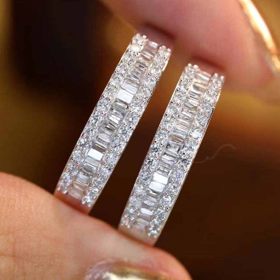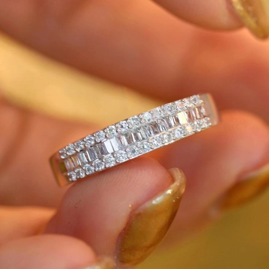 แหวนทองคำขาว 9K 10K ประดับมอยซาไนต์ทรงบาแกตต์แบบอีเทอร์นิตี้