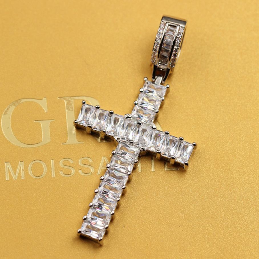 จี้ทองคำแท้ 14k รูปทรงกางเขน ประดับเพชรโมอิสซาไนต์ทรงบาแก็ตต์สีขาว จาก Yu Ying Fashion High-end Jewelry สำหรับสร้อยคอ