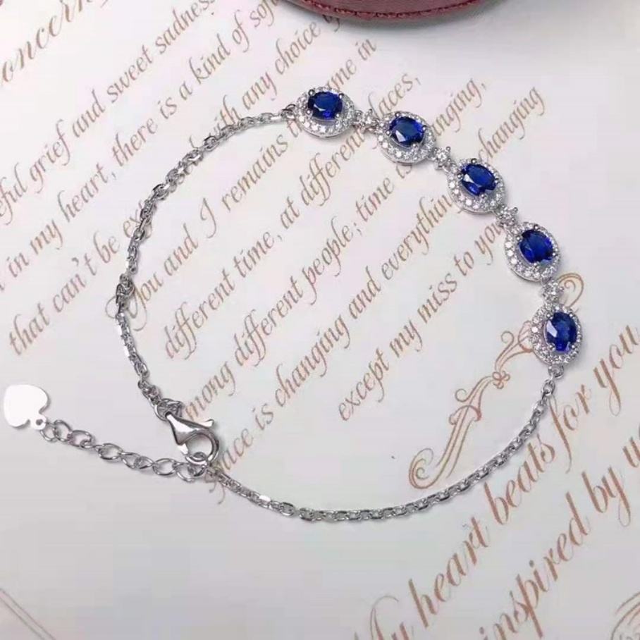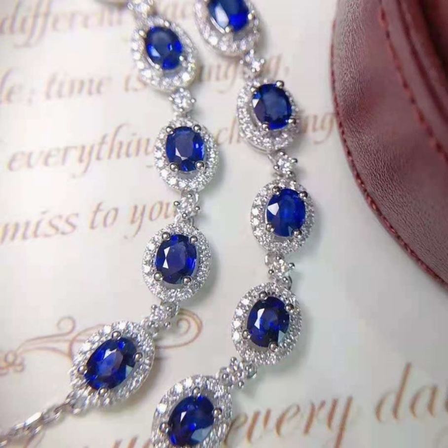 สร้อยข้อมือทองคำขาว 14k ดีไซน์จาก Yu Ying Gems สำหรับเด็กผู้หญิง รูปทรงวงรี ประดับด้วยไพลินสีน้ำเงิน VVS และสร้อยคอเพชรโมอิสซาไนต์แบบวงแหวน