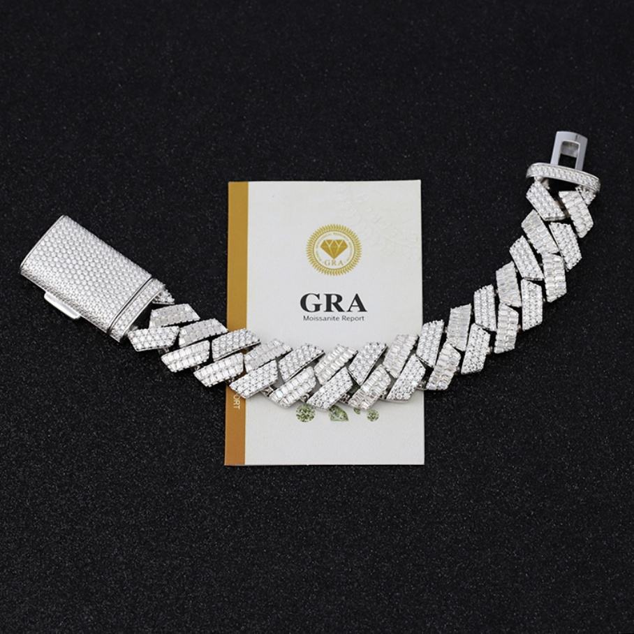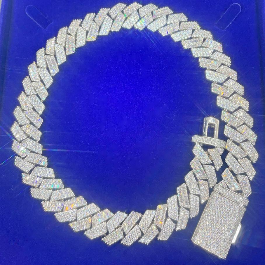 สร้อยคิวบาหรูหรา Yu Ying กว้าง 20 มม. ประดับเพชรโมอิสซาไนต์ทรงกลมและทรงบาแกตต์ สำหรับผู้ชาย สร้อยเงินแท้ S925 สไตล์ฮิปฮอป