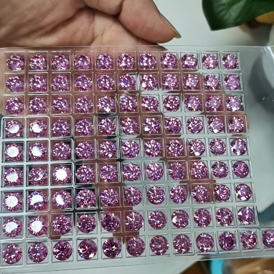 หยูอิง RTS มอยส์ซาไนต์สีชมพูแฟนซี ขนาด 3 มม. ถึง 10 มม. เพชรกลมสีชมพูสังเคราะห์คุณภาพเยี่ยมสำหรับทำเครื่องประดับ