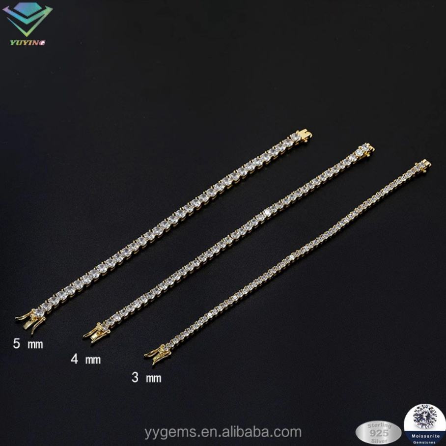 หยูอิง RTS ดีไซน์ D สีโมอิสซาไนต์ ขนาด 2 มม.~5 มม. เงินแท้ S925 สร้อยคอและสร้อยข้อมือสไตล์ฮิปฮอปสำหรับผู้หญิงและผู้ชาย สร้อยเทนนิสโมอิสซาไนต์