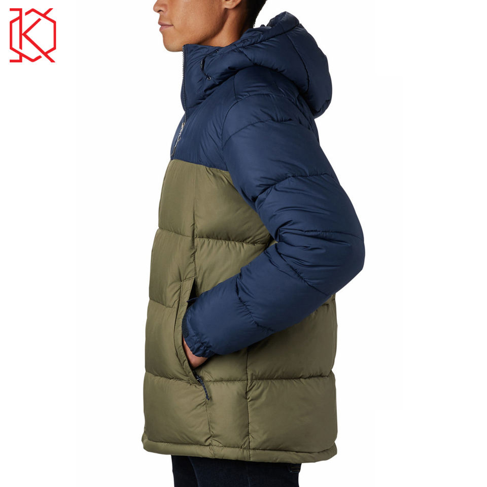Yufan แจ็กเก็ตฤดูหนาวของผู้ชายปรับแต่งได้ทุกขนาดมีคอตั้งปลอกผ้านวมแจ็คเก็ตขนเป็ดสีดำบางยาว