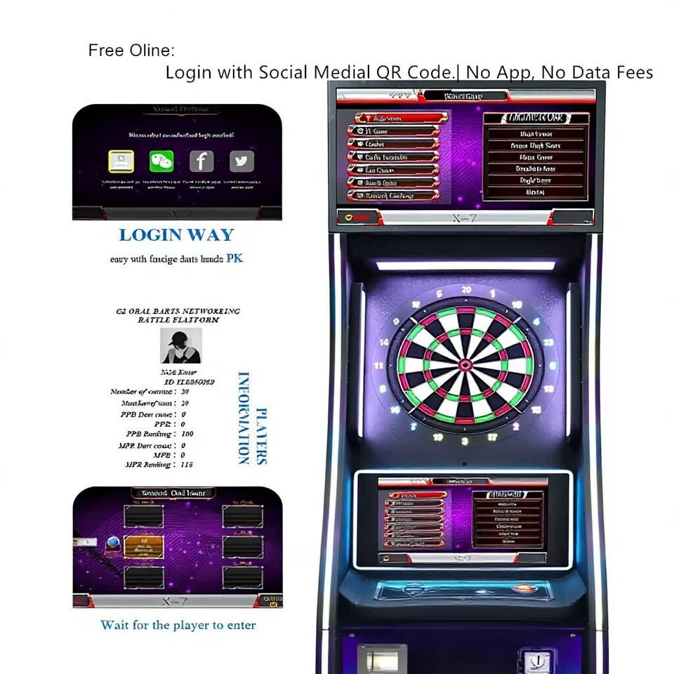 เครื่องเล่นเกมยูลอง X7 แบบตั้งพื้น จอคู่ รองรับผู้เล่นหลายคน พร้อมระบบแลกของรางวัล ผลิตในจีน ใช้เครื่องอ่านธนบัตรแบบแคนาดา โครงสร้างโลหะผสม น้ำหนัก 142 กก.