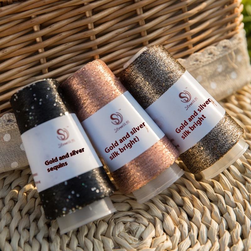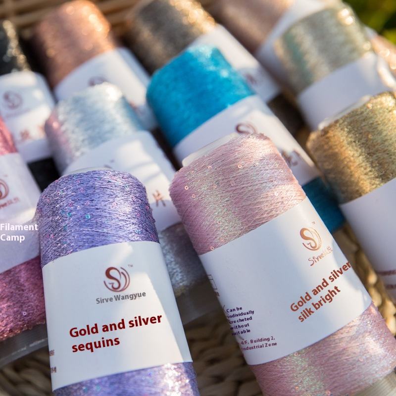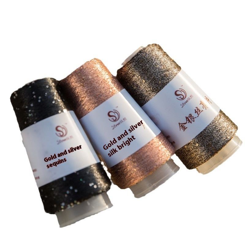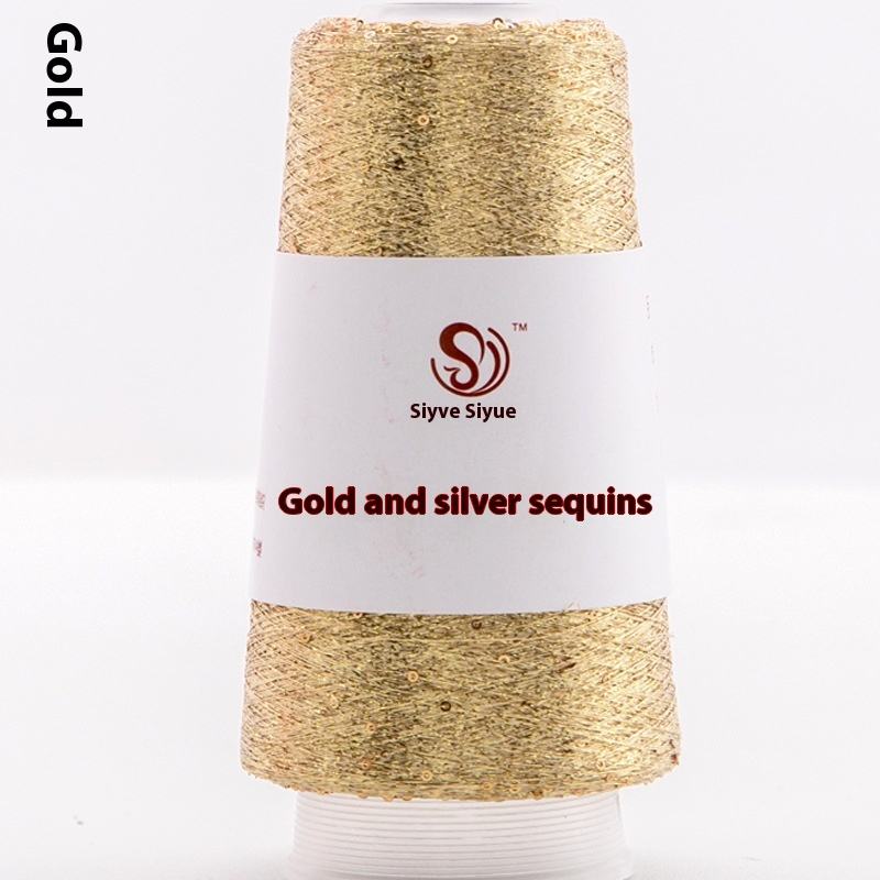 Yue/diy เสื้อสเวตเตอร์ลูกบอลขนสัตว์แบบทอมือสีทองเงินปักเลื่อมลายดอกไม้สีสันสดใสผ้าสิ่งทอสำหรับของขวัญแปลกใหม่