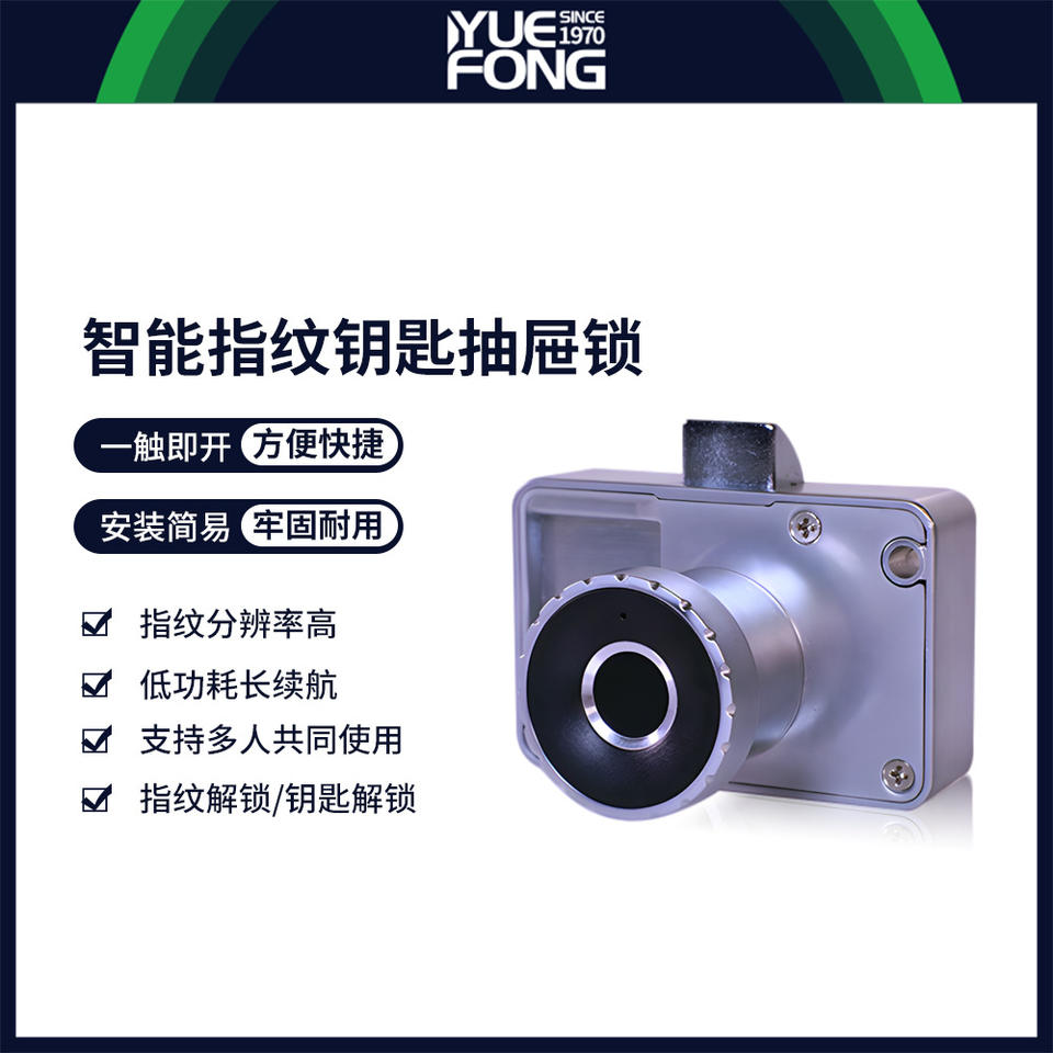 ยูเฟิง ล็อคลิ้นชักแบบสแกนลายนิ้วมือ สีเงินดำ อลูมิเนียม ล็อคประตูสำนักงานอัจฉริยะ พร้อมกุญแจ DYL10 20 จุดเก็บข้อมูลลายนิ้วมือ